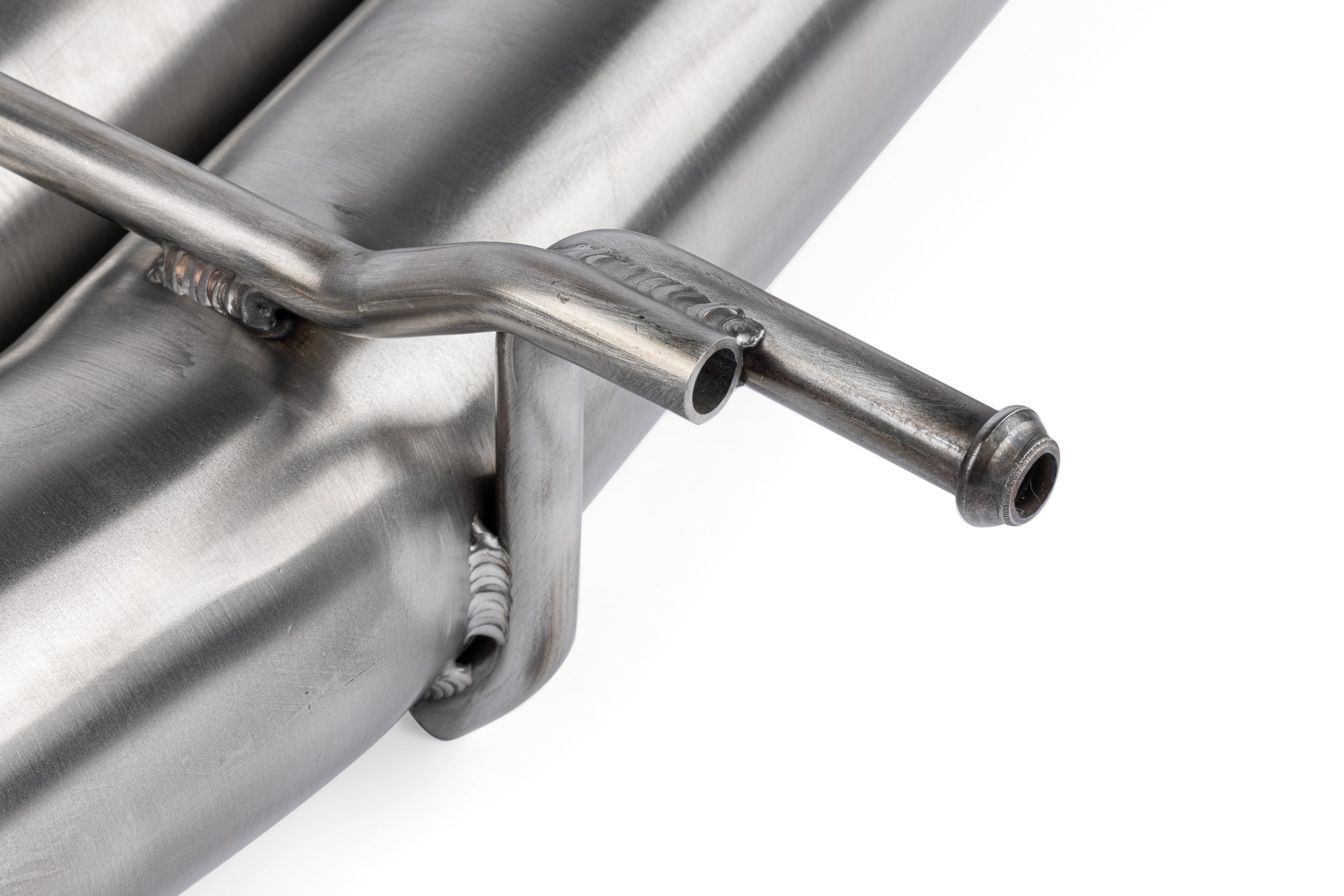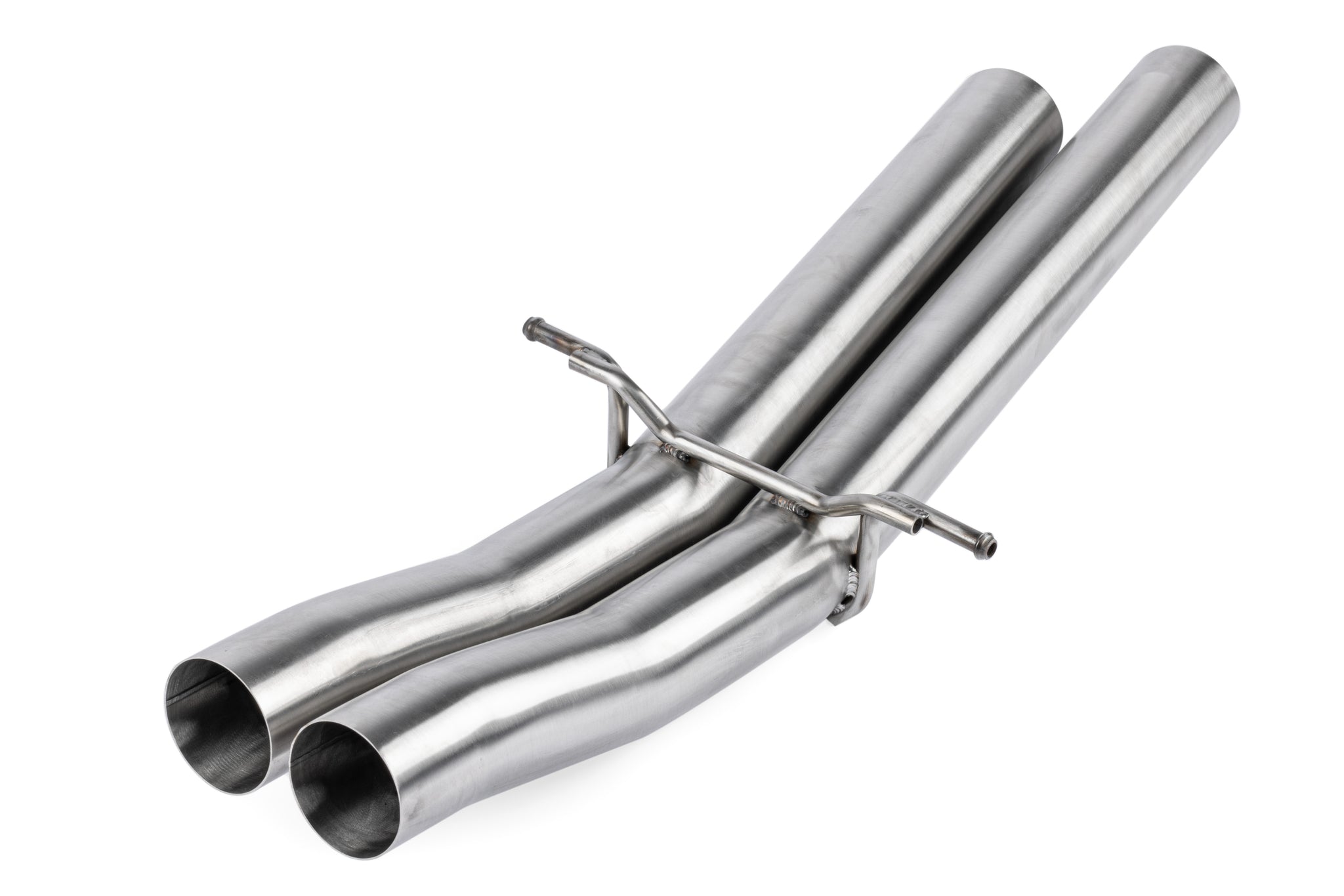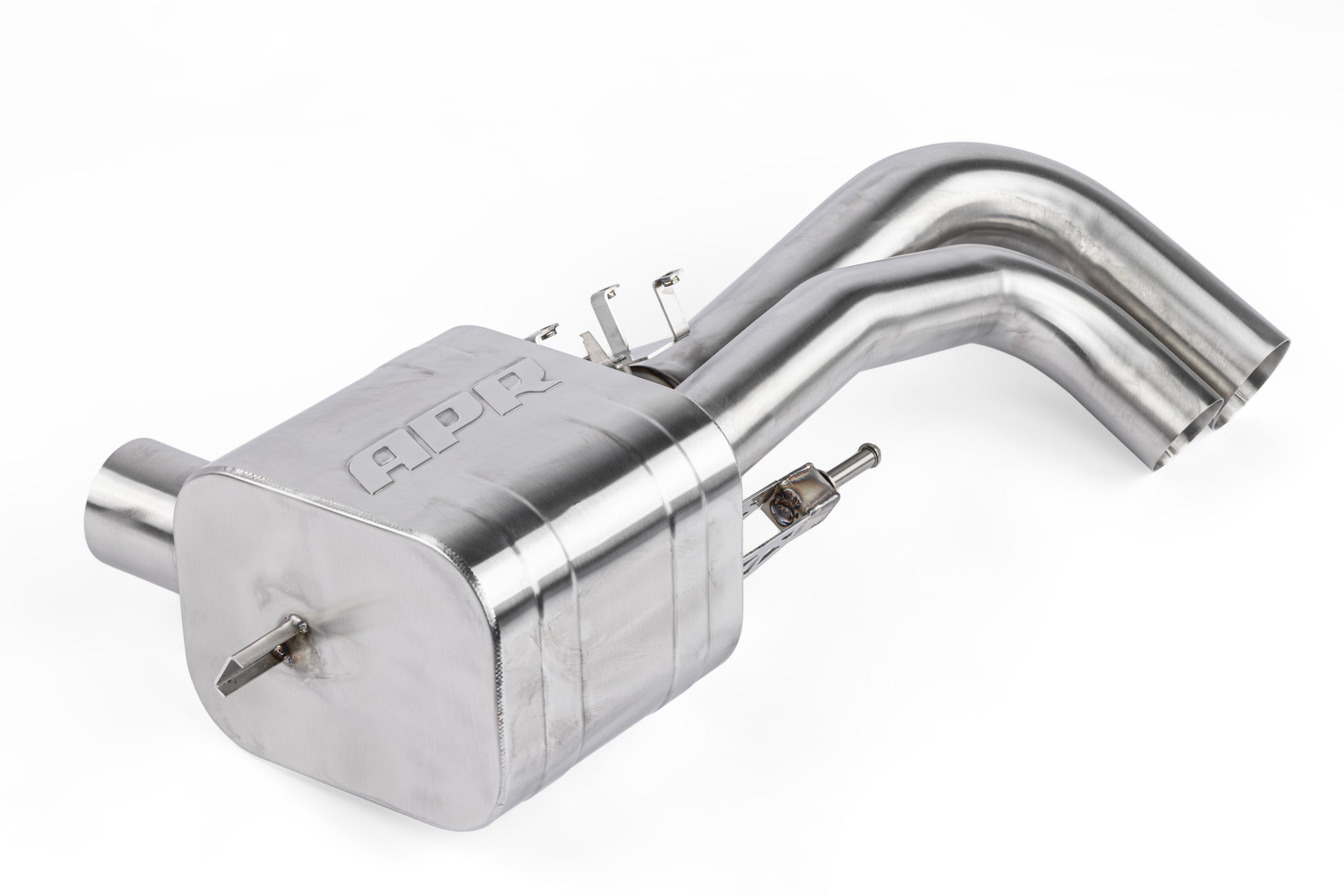 Quad pipes exit the system into the exhaust tips and consist of dual 3" valved exhaust paths and dual 2.5" non-valued paths. This allows for multiple sound profiles depending on driving style. The RS Q8 is a monster and sounds absolutely menacing when under wide pen throttle. When the vales open, the fire-breathing twin-turbo V8 gets rowdy. Expect a deep and throaty roar that will send shivers up and done your spine as you're pinned to the back of your seat. And yet when you contain the beat and drive like a normal human being the ECU controlled valves close, reducing sound volume and drone. If you fight the urge to drive like a maniac, the exhaust will reward you with a pleasant low rumble that lets you know its there without upsetting the neighborhood. This is the ultimate exhaust system for the Audi RS Q8!