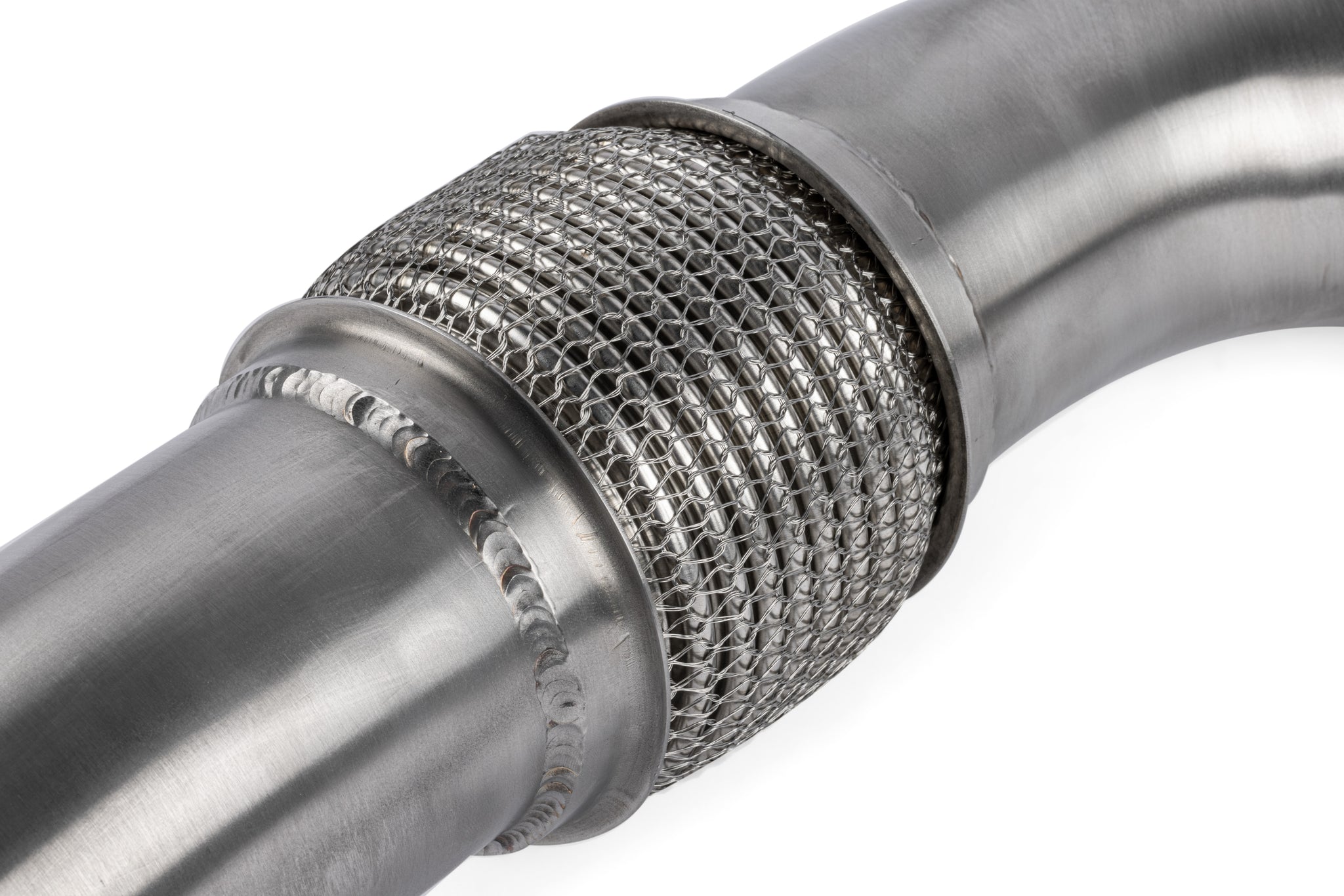 Our premium catback exhaust system is a full length T304 stainless steel exhaust system that's sure to turn heads! Cast flanges make a smooth transition from the factory turbo catalyst pipes into our downpipes and upgrade the size of the piping to 3". High quality brushed T304 stainless steel adorns the system with TIG welding throughout. The piping is as straight and smooth as possible, with mandrel bends and minimal mufflers for maximum flow.