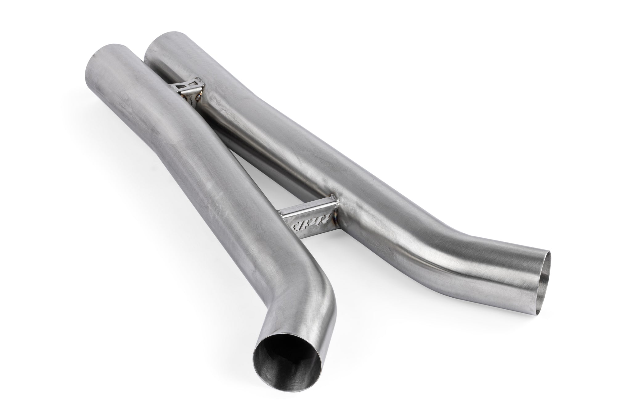 - Dual 3" mandrel-bent brushed tubing with dual 3" valved and dual 2.5" non-valved outlets