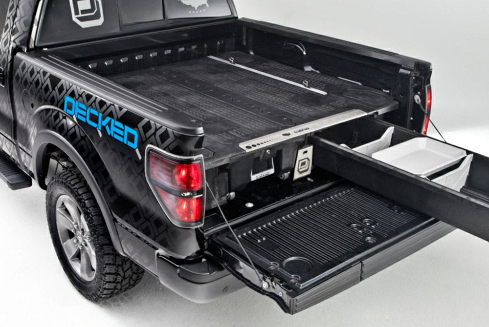 A pickup bed is just a big open box, which is fine for hauling big stuff but not ideal for carrying a lot of small items. Whatever the size of your cargo, you can get it organized and secured with our tool boxes and bed organizers. Choose from tool boxes in a range of capacities and styles including crossover, side mount, chests, and wheel well boxes. Most are constructed from rugged diamond pattern aluminum, have gaskets to keep out moisture and dust, with sturdy locks to prevent theft. We offer simple dividers like cargo bars and gates for separating large cargo items, storage pockets and trays for gear you carry regularly, and a large selection of drawer units for organizing and carrying small items. Most drawers have dividers and compartments for further categorization.