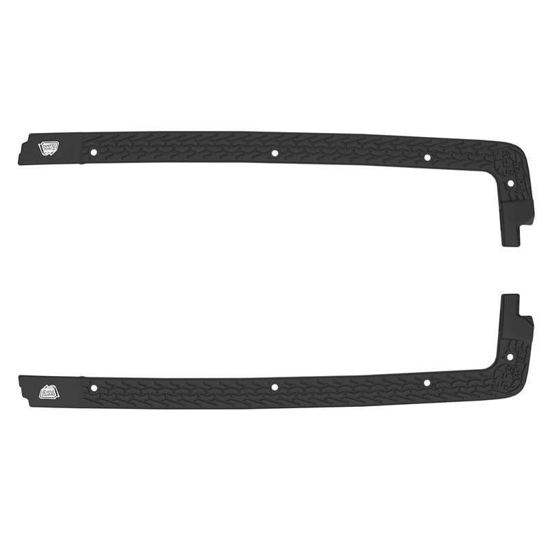 When the factory hardtop is removed, the revealed surface is left exposed and can be easily scratched, or damaged. aFe POWER has a solution that is both ruggedly tough, and off-road inspired to help protect the surface and enhance the look of your vehicle. On-road or off-road, the unique tire tread design and aFe POWER logo, repels any condensation, splashes, or spills to drain to the outside of the vehicle and not to the inside. The unique textured surface helps with grip when accessing top mounted storage containers or scouting the trail ahead. The Terra Guard Tub Rail Covers are constructed of a durable rotomolded polymer material that is both scratch and UV resistant so it can survive anything the trail throws at it. XLPE (Cross-linked Polyethylene) is not a paintable material. Engineered using 3D laser scanning and CAD software, the Tub Rail Covers are designed for a perfect fit. Although not all vehicles are built the same, the oversized mounting holes allow for precise placement to align with your vehicle's door jams before securely fastening into place for a perfect fit and finish. Terra Guard Tub Rail Covers should be installed when the factory hard top is removed. This quick installation will ensure the painted body tub rail surface is never exposed long enough to be damaged. Whether using the factory hardware or the optional Stainless Steel security screws, both can be stored into the same factory tray holder in the back of the Jeep, so they are never misplaced. An optional stainless-steel security hardware kit is available, P/N: 79-90001. Stainless-steel provides good strength and corrosion resistance in bad environments like high temperature, cold weather and high humidity areas. The low-profile design sits flush with the tread pattern of the Tub Rail Covers, and the tamper-proof design requires a special tool that is included in the kit.
