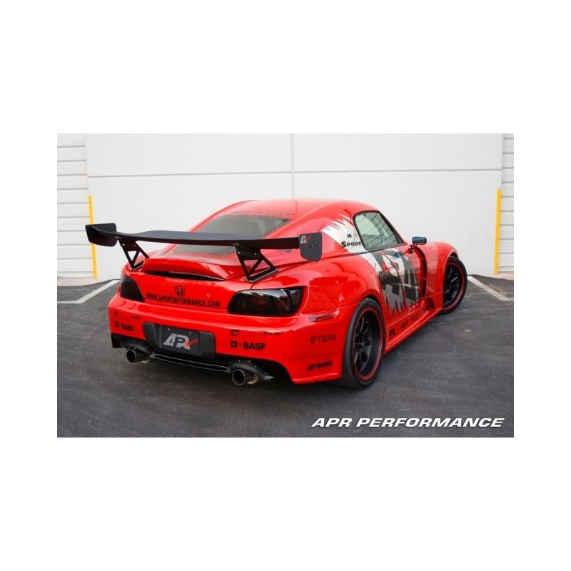 The S2-GT Widebody Aerodynamic Kit for the Honda S2000 brings the performance of a grand touring racecar to the street. To improve overall handling and traction, this aerodynamic kit increases +45mm per front fender and +50mm per rear fender allowing for massive front wheel sizes of 18"x9" with 265/35/18 profile tires and rear wheel sizes of 18"x10" with 285/30/18 profile tires.