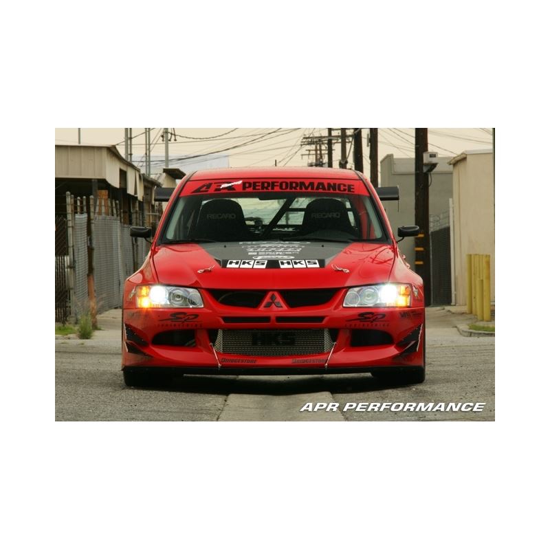 With the APR Performance EVIL-R wide-body aerodynamic kit, Evolutions owners can obtain highly-demanded traction. The EVIL-R aerodynamic kit increases overall body stance by 3.5 inches (90mm). With this increased distance, Evolution owners can now run 18 inch wheels with wheel diameters ranging from 10 to 11 inches and tires diameters up to 305mm to maximize wheel traction.