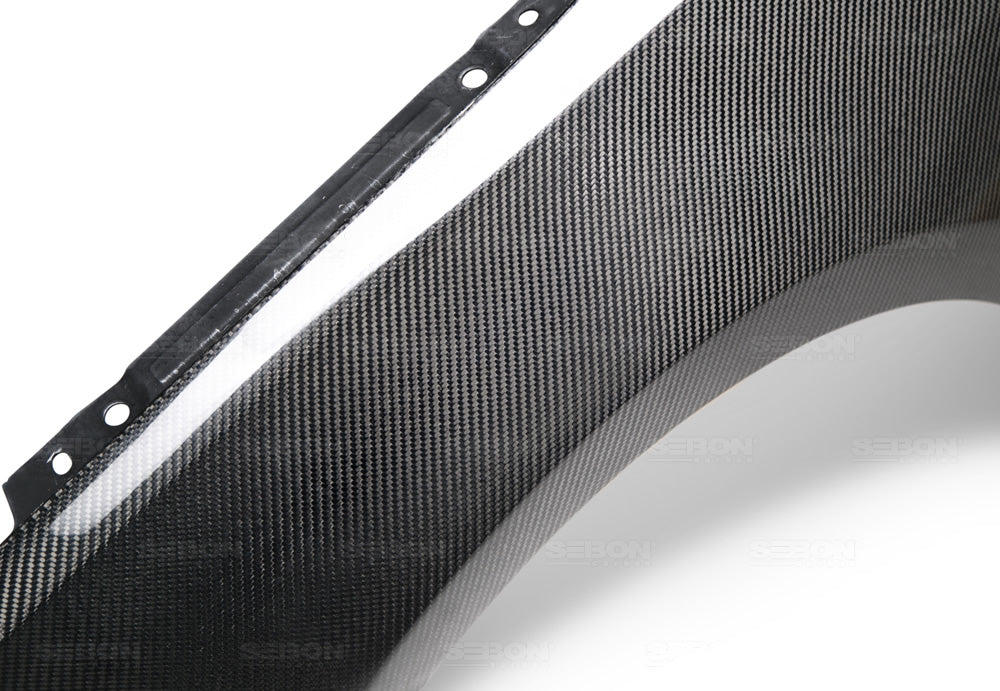 Every component is constructed with a consistent weave pattern. Our production processes allow exceptional carbon/resin ratio, creating high product stiffness that also leads to extra strength. For a stunning finish, our products are coated with a glossy clear coat that does not chip or flake. We meticulously inspect all of our components and stand firmly behind our products so that you can enjoy peace of mind with every genuine Seibon Carbon product.