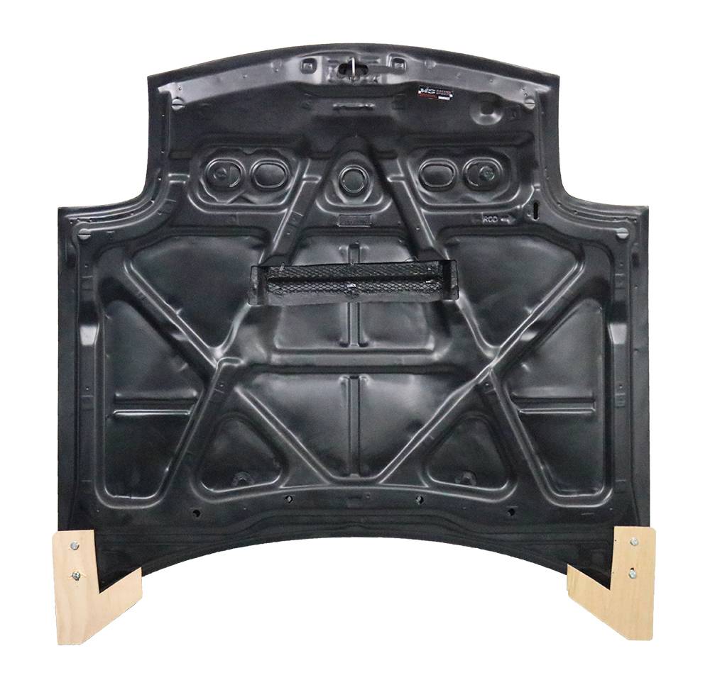 Hoods and Trunks are made from 100% ISO-certified, Grade-A carbon fiber material.All VIS Carbon Fiber Hoods and Trunks are manufactured using a two-part construction design.The top layer is composed of carbon fiber material bonded to the hood surface with high-grade epoxy resin, and finished with an ultra-clear (Poly Shield), UV-protective polyurethane coating for a high gloss finish.A one-piece, smooth underside shell is fused to the top layer enhancing the product's structural integrity.The edges are smoothed by hands to insure good quality finish all around.In 2014, we further improved on this manufacturing process by introducing the Vacuum Infusion Process (V.I.P.), which utilizes a single-mold vacuum to produce parts that are 10-20% lighter than before while improving durability.We are transitioning our full spectrum of carbon parts to use the VIP process so that our customers can enjoy these improved products without incurring a huge cost increase. All VIS Carbon Fiber Hoods and Trunks come with a VIS badge of authenticity.Please be sure to look for the badge when purchasing.Due to the unknown nature of the intended uses of these products, hood pins are required.These products are intended for off-road use only, unless your local and state laws state otherwise.