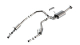 EXCEPT High Output & GT Package. This 3" diameter into dual 2.5" Cat-Back™ system contains BORLA®'S Polyphonic Harmonizer Technology inside the muffler that utilizes patented units that contain pipes of different diameters and lengths to create multiple exhaust notes that harmonize to deliver a clean rich full-bodied sound. The system delivers the aggressive ATAK® sound with no drone inside the vehicle. Tips NOT included use optional BORLA® tips or reuse Original Equipment (O.E.) tips. BORLA® Cat-Back™ and Axle-Back exhaust systems feature patented straight-through and multi-core technology designed to unleash hidden horsepower. Increased exhaust velocity adds power driving excitement fuel economy and the distinctive BORLA® Sound of Power respected by motoring enthusiasts everywhere. Each system is built from premium high-quality T-304 austenitic stainless steel superior to T-400 series knockoffs (such as 409) to give you the absolute best in performance and durability. Ultra-smooth mandrel bends ensure maximum flow & power and precision computer numerical control (CNC) manufacturing ensures an accurate fit. Best of all BORLA® stands behind every system with a Million-Mile Warranty. Just what you'd expect from the world's most experienced (and most winning) exhaust brand.