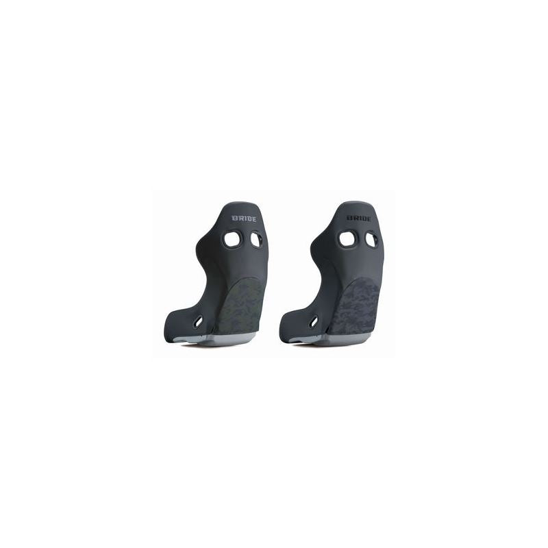 An aggressive model based on the standard BRIDE full bucket seat model ZETA IV, with a camouflage pattern covering the back of the seat.