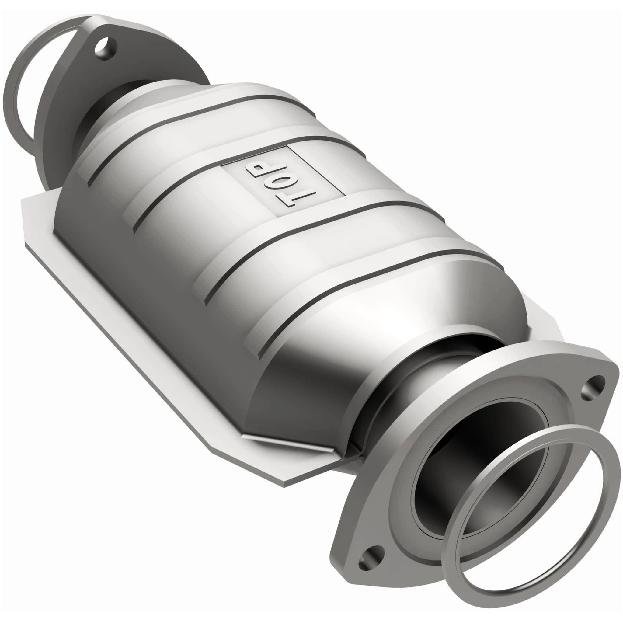 MagnaFlow HM Grade Federal/EPA Compliant Direct-Fit Catalytic Converter 23622 helps keep the check engine light off. DIY installation is easy with the proper tools (no cutting or welding required). With features including mandrel-bent tubing to eliminate flow restrictions and stainless steel construction to resist corrosion you can have confidence in the quality of this catalytic converter. Using state-of-the-art 3D scanning systems in the design process the MagnaFlow metrology department ensures this new part to fit and function like the original equipment. Designed to fit the 1995-1997 Toyota Land Cruiser and 1996-1997 Lexus LX450 this direct-fit catalytic converter also interchanges with OE part 18450-66120. Avoid potential exhaust leaks by using the included gaskets to get a proper seal. This replacement part is designed to meet or exceed Federal emissions requirements set forth by the EPA complying with legal standards for OBDII Federally registered vehicles with Federal/EPA Emission systems.