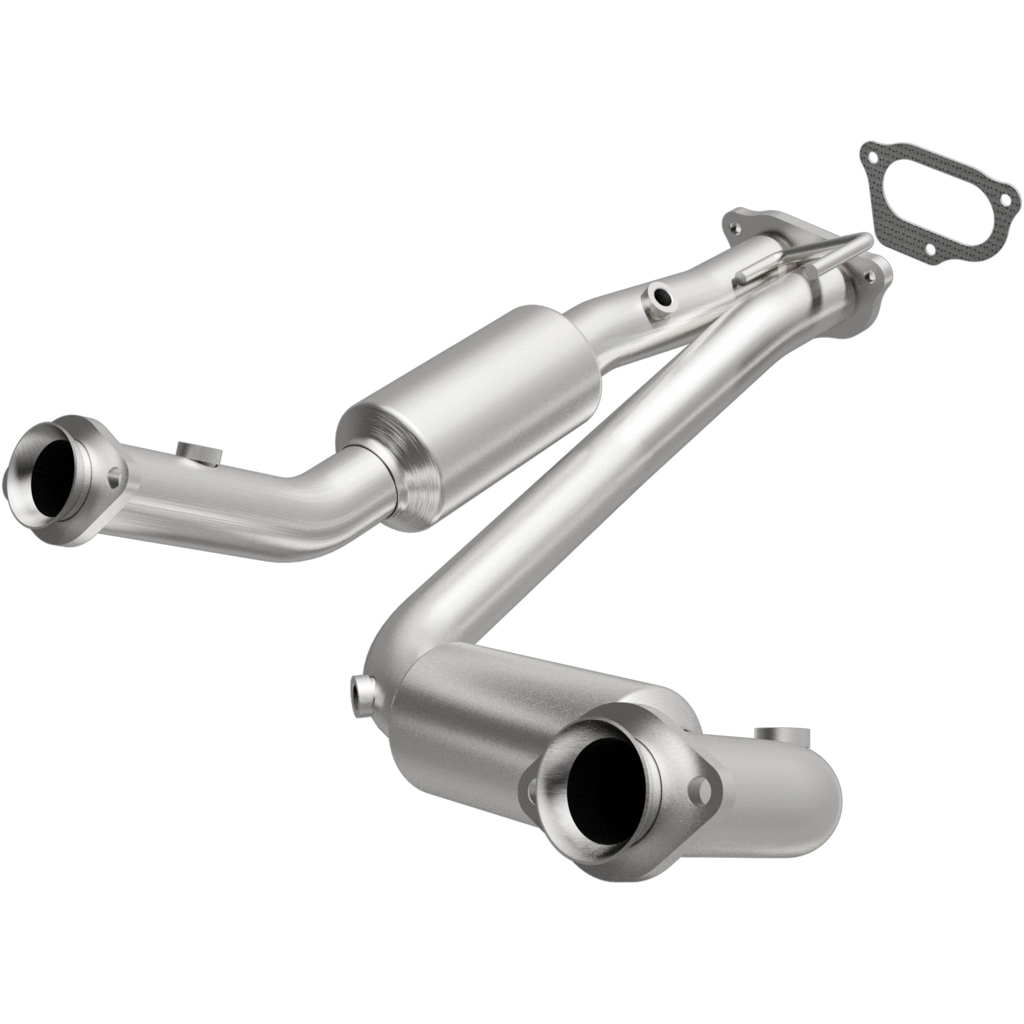 Keep the check engine light off with MagnaFlow California Grade CARB Compliant Direct-Fit Catalytic Converter 5481682. With features including free-flowing mandrel-bent tubing and highly corrosion resistant stainless steel construction easily install this spun body converter yourself using the proper tools no cutting or welding required. MagnaFlow's state-of-the-art metrology department uses the latest 3D scanning systems during research and development so you can be confident that your new part will fit and function like the original equipment. By replicating the OE spun body design the single laser fusion weld greatly reduces the possibility of a leak and our compact low-mass design also allows for greater thermal efficiency. Designed to fit the 2004-2006 Ford Ranger and 2004-2006 Mazda B4000 this direct-fit catalytic converter also interchanges with OE parts 1F72-40-050 and 1F72-40-050A among others. Avoid potential exhaust leaks by using the included gaskets to get a proper seal. This replacement part is designed to meet or exceed California Air Resource Board requirements and has undergone additional testing to comply with CARB guidelines to allow for legal use in California and CARB restricted states for the listed vehicles.
