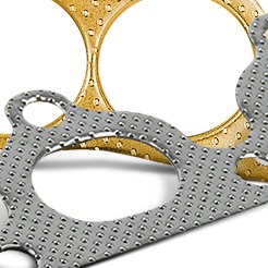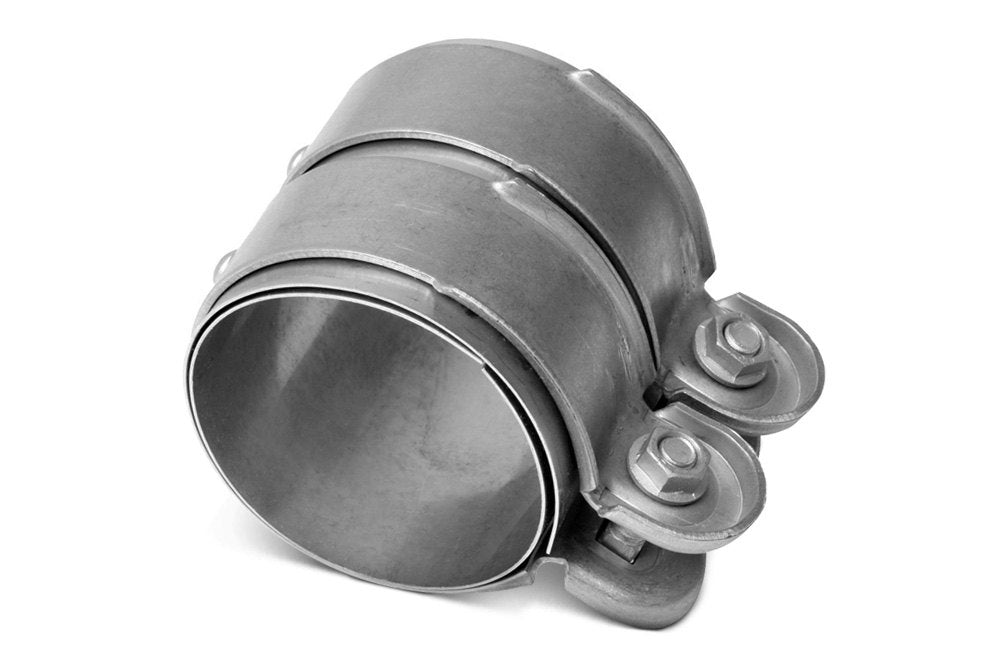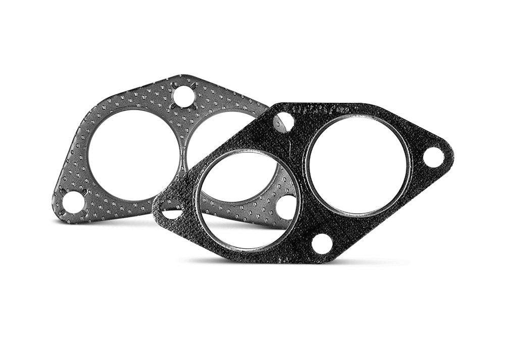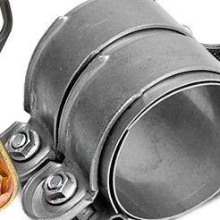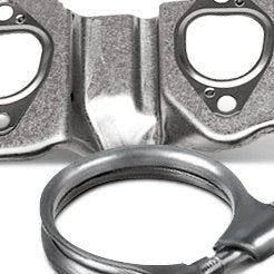 Exhaust gaskets are generally constructed from embossed steel, multilayer steel, graphite, and copper. There are also composite gaskets with heat resistant material attached to a steel core. While exhaust gaskets must be used in conjunction with fasteners, exhaust clamps both seal and secure components. Clamps are typically used to connect exhaust pipes to mufflers, resonators, catalytic converters, and in some cases to attach exhaust hangers. Exhaust clamps generally fall into 2 categories: band clamps, sometimes called lap joint clamps, and the traditional U-bolt clamps, also called saddle clamps. U-bolt clamps are effective and usually less expensive, but because their clamping force is concentrated it can make component disassembly difficult if necessary in the future. Band clamps apply pressure over a wider area and create less component distortion, so they can be a better choice if ease of disassembly is desired.