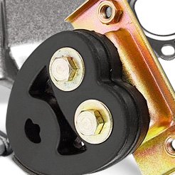 Exhaust hangers support the exhaust system in its designed location and insulate the chassis from engine vibration. Most modern OE style hangers are made from reinforced rubber with holes that slip over metal brackets welded to exhaust pipes and/or the muffler, and attached to the chassis. Hangers can crack, tear, and break from age and exposure to heat and the elements. Broken hangers can allow the system to hang low where it could suffer impact damage, and move excessively and contact other chassis components, resulting in noise and vibration. We have a large selection of vehicle specific and universal hangers. Vehicle specific hangers are your best choice for factory style exhaust systems, universal hangers are ideal for custom systems or if a vehicle specific hanger is unavailable.
