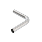 45-degree elbow with 4" bend radius and 12.5" legs. Heavy 18-gauge high-quality T-304 austenitic stainless steel. Mandrel bent for consistent diameter throughout the bend area for maximum flow. Natural mill finish can be brushed or polished prior to installation. Size is outside diameter
