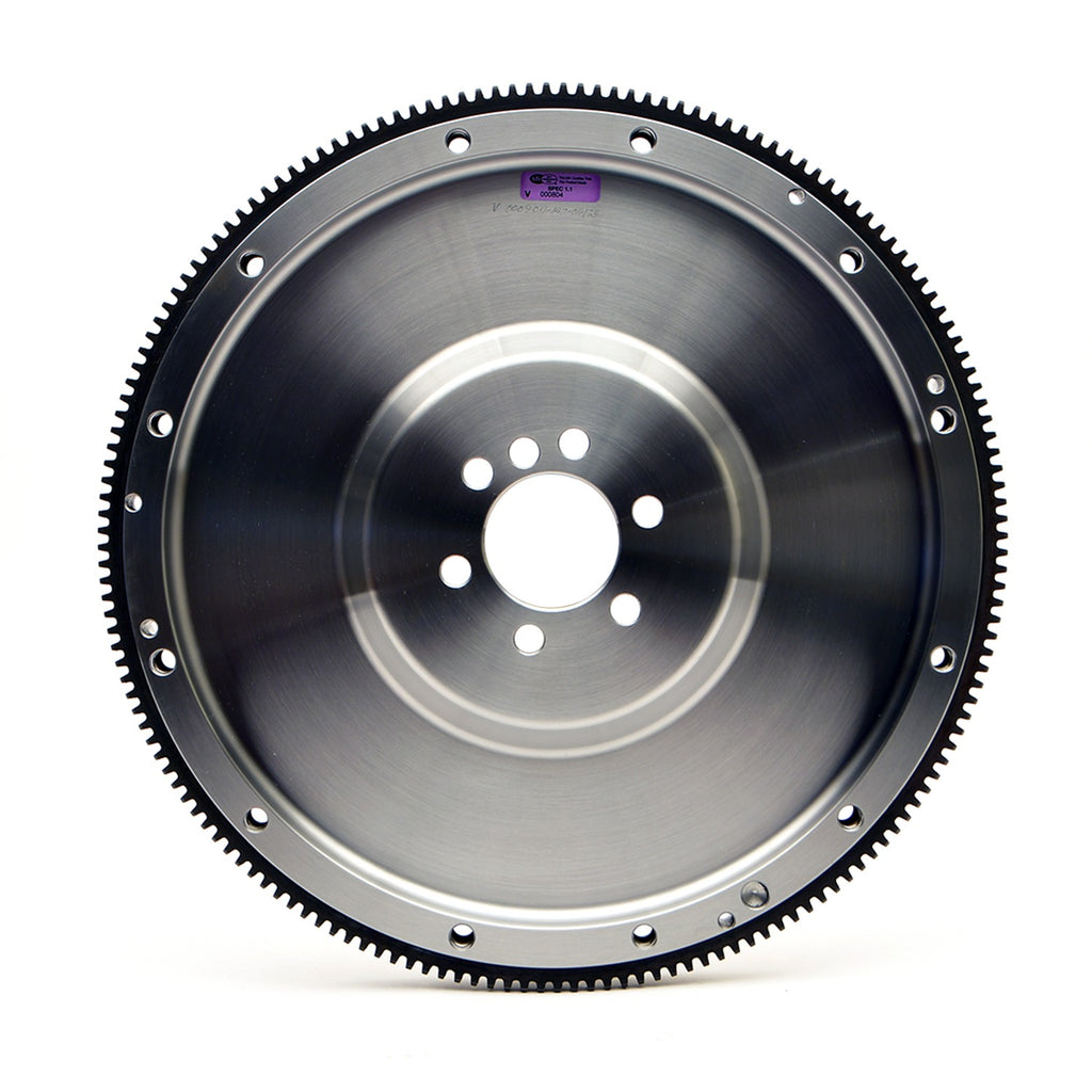 This Centerforce billet steel flywheel solves a variety of problems associated with LS swaps utilizing earlier (non-LS) transmissions. Most LS engines have a crank offset that is 0.400" shallower than earlier generation Chevy small blocks. This presents a problem for those wanting to use a later LS engine with a manual transmission that was originally attached to a non-LS application such as a Muncie 4-speed. This different crank offset causes internal bellhousing geometry problems with throwout bearing travel and clutch engagement when attempting to use an off-the-shelf LS flywheel with an earlier transmission. This flywheel bolts to a standard LS 6-bolt crankshaft but is machined with an extra 0.400" of thickness compensating for the LS crank offset and placing the flywheel face and clutch assembly in the proper position to work with earlier transmissions. Centerforce(R) steel flywheels are manufactured from high quality billet steel and match closely to the original equipment flywheel weight. Billet steel flywheels are available for popular import and domestic vehicles including trucks. Centerforce steel flywheels are CAD/CAM-designed and CNC-machined from billet steel for precise no-hassle bolt-in installation. Centerforce billet steel flywheels are SFI-certified so you know that you can count on them on the street and on the track.