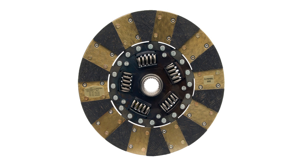 The Centerforce(R) Dual Friction(R) Disc Series uses a single disc with patented dual friction technology by distributing pressure plate clamp force evenly over a 360-degree friction-facing on one side of the clutch disc while the opposing side uses a segmented friction-facing to concentrate clamping pressure and increase clutch holding-capacity. These discs are made for Centerforce Dual Friction pressure plates.