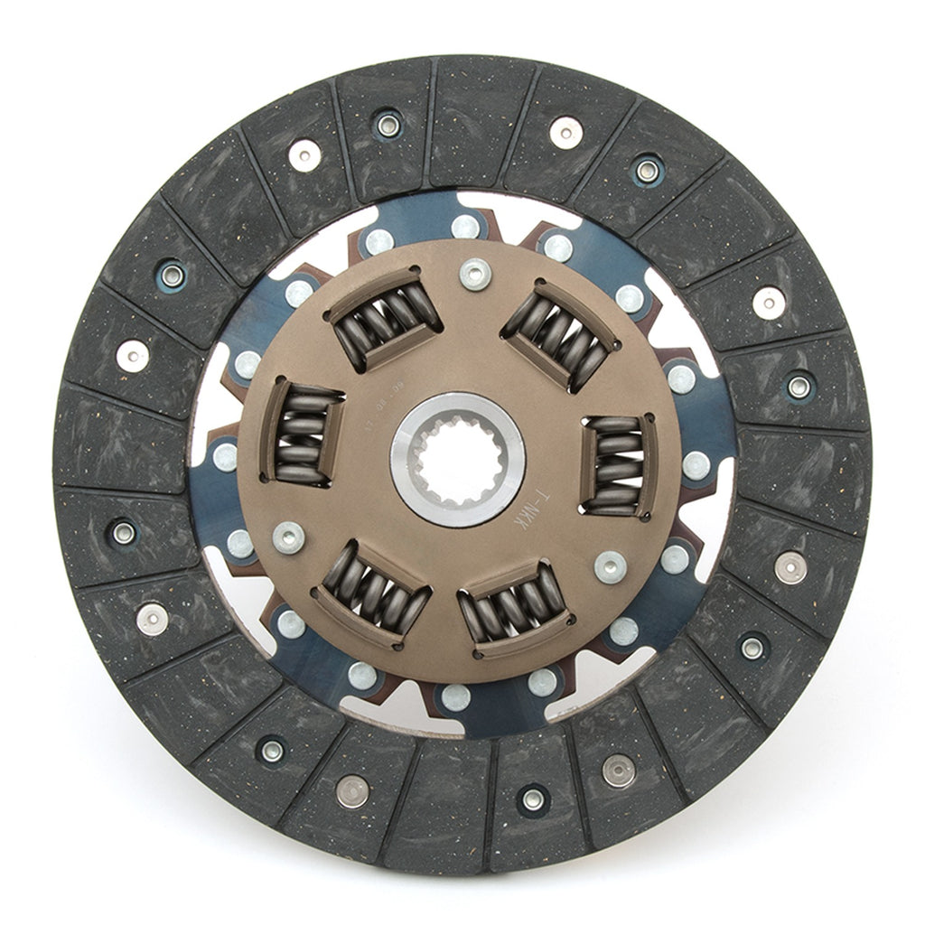 The Centerforce(R) Dual Friction(R) Clutch Series is a performance matched pressure plate & disc combination featuring the patented Centerforce centrifugal weight system (where applicable) and specialized machining processes to provide a performance clutch that offers exceptional street characteristics while offering outstanding holding-capacity and durability. Furthermore the Centerforce Dual Friction disc has an organic full facing on one side for longevity and an organic segmented facing on the other side providing increased holding capacity. Some applications have the organic segmented facings of both sides. The Dual Friction clutch is engineered for those who are looking for the ultimate in street/strip holding power and performance without sacrificing pedal effort and driver control. While the Dual Friction has been engineered primarily as a street clutch it can be used in mild competition applications.