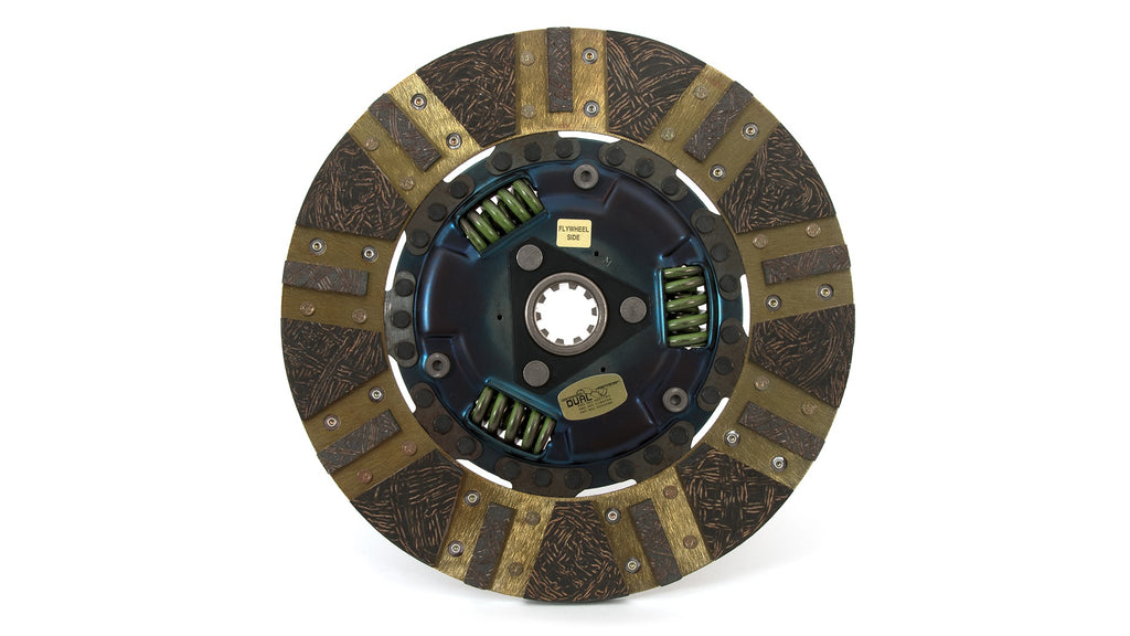 The Centerforce(R) Dual Friction(R) Clutch Series is a performance matched pressure plate & disc combination featuring the patented Centerforce centrifugal weight system (where applicable) and specialized machining processes to provide a performance clutch that offers exceptional street characteristics while offering outstanding holding-capacity and durability. Furthermore the Centerforce Dual Friction disc has an organic full facing on one side for longevity and an organic segmented facing on the other side providing increased holding capacity. Some applications have the organic segmented facings of both sides. The Dual Friction clutch is engineered for those who are looking for the ultimate in street/strip holding power and performance without sacrificing pedal effort and driver control. While the Dual Friction has been engineered primarily as a street clutch it can be used in mild competition applications.
