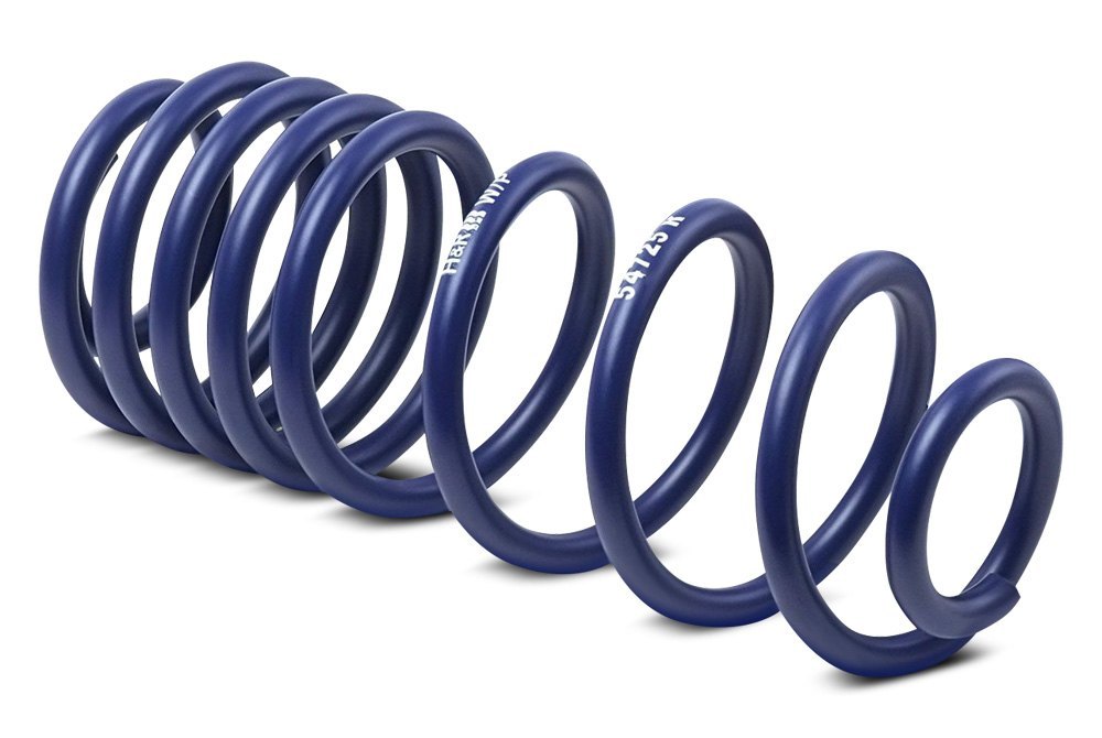 Spring rate is the amount of weight it takes to compress a spring one inch. If a 300 lb. load is applied to a 300 lb. per inch spring, the spring will compress one inch. In a linear rate spring, the rate is constant throughout the spring, and the coils are evenly spaced. Progressive springs have coils that are closer together at one end than the other. The coils that are more tightly wound provide a smooth ride, but when you step up the pace, they come together and the remaining coils compress at a higher rate, which prevents bottoming out, excessive body roll, front end dive, and acceleration squat. Dual rate springs are a form of progressive spring, but instead of a gradually changing rate, they instead have two distinct spring rates.