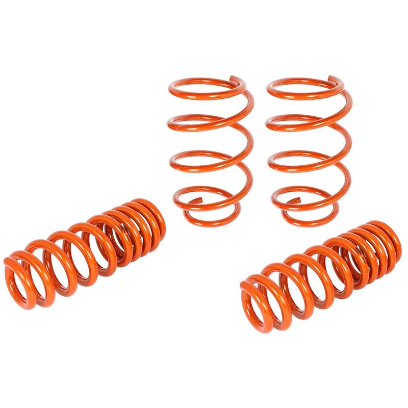 Control Front and Rear Tangerine Lowering Coil Springs with 0.8" Front and Rear Drop Height by aFe. Quantity: 4 per Pack. These springs are made in the USA and are engineered to optimize the factory shock absorber damping and offer a front and rear drop for the perfect blend of performance and style. The lowering springs will increase cornering and handling performance, giving you the confidence to take that turn without adversely affecting ride quality. The lowered stance will transform the way your car, as well as offer improved aerodynamics. Designed as a direct fit application these springs require no modifications to the vehicle.