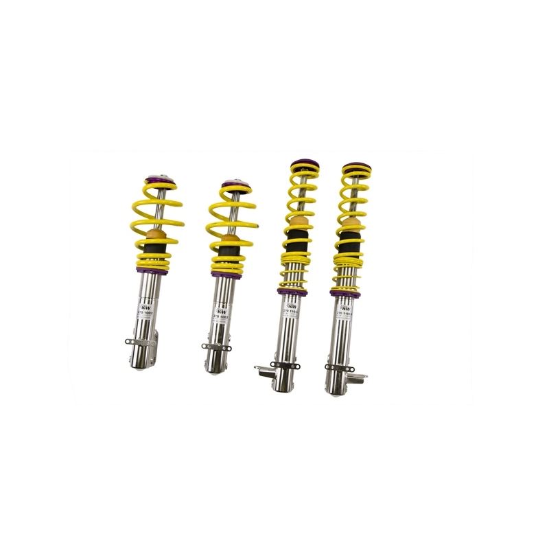 The KW Variant 1 "Inox-line" coilover kit is our entry point into our street performance lineup. Thanks to the high-quality "Inox-line" stainless steel coilover struts, corrosion resistant springs, bumps stops and dampers that are optimally tuned by our engineers the result is a balanced and sporty feel specific to each vehicle application designed for long lasting driving pleasure. The KW Variant 1 "inox-line" coilover allows you to experience an optimized balance of sportiness and comfort while driving. Even with a maximum vehicle load, the dampers always maintain a sporty characteristic. With KW Variant 1 coilovers you can achieve maximum lowering within an approved lowering range that ensures a proper functioning suspension and adequate travel after your car is lowered. Even after years of use you can easily adjust the ride height thanks to the dirt resistant trapezoid thread and composite adjustment collar.