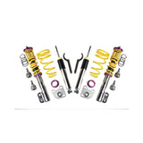 The KW Variant 1 "Inox-line" coilover kit is our entry point into our street performance lineup. Thanks to the high-quality "Inox-line" stainless steel coilover struts, corrosion resistant springs, bumps stops and dampers that are optimally tuned by our engineers the result is a balanced and sporty feel specific to each vehicle application designed for long lasting driving pleasure. The KW Variant 1 "inox-line" coilover allows you to experience an optimized balance of sportiness and comfort while driving. Even with a maximum vehicle load, the dampers always maintain a sporty characteristic. With KW Variant 1 coilovers you can achieve maximum lowering within an approved lowering range that ensures a proper functioning suspension and adequate travel after your car is lowered. Even after years of use you can easily adjust the ride height thanks to the dirt resistant trapezoid thread and composite adjustment collar.