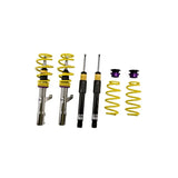The KW Variant 1 "Inox-line" coilover kit is our entry point into our street performance lineup. Thanks to the high-quality "Inox-line" stainless steel coilover struts, corrosion resistant springs, bumps stops and dampers that are optimally tuned by our engineers the result is a balanced and sporty feel specific to each vehicle application designed for long lasting driving pleasure. The KW Variant 1 "inox-line" coilover allows you to experience an optimized balance of sportiness and comfort while driving. Even with a maximum vehicle load, the dampers always maintain a sporty characteristic. With KW Variant 1 coilovers you can achieve maximum lowering within an approved lowering range that ensures a proper functioning suspension and adequate travel after your car is lowered. Even after years of use you can easily adjust the ride height thanks to the dirt resistant trapezoid thread and composite adjustment collar.