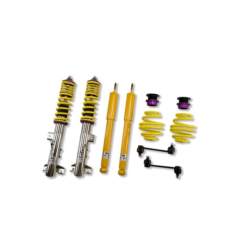 KW is the Benchmark for coilovers. KW Variant 2 "inox-line" coilover rewards the sporty driver with its harmonious pre-configured setup. For each vehicle our engineers develop a specific damper setup and spring rate to increase the driving pleasure with an optimal balance of sportiness and practicality. As with all KW coilovers, the engineers at KW develop the vehicle-specific KW damper tuning and spring rates with comprehensive testing on the Nurburgring Nordschleife and in the KW 7-post chassis dynamics test center. You are not buying a mass produced, generic coilover kit, a KW coilover has been developed specifically for your particular vehicle. As a manufacturer, KW uses only its own resources, high quality components and the damper technology that has all developed in-house. With the KW Variant 2 "inox-line" coilovers, body roll will be reduced during compression giving you the benefit of a more genuine and direct sporty handling while driving.