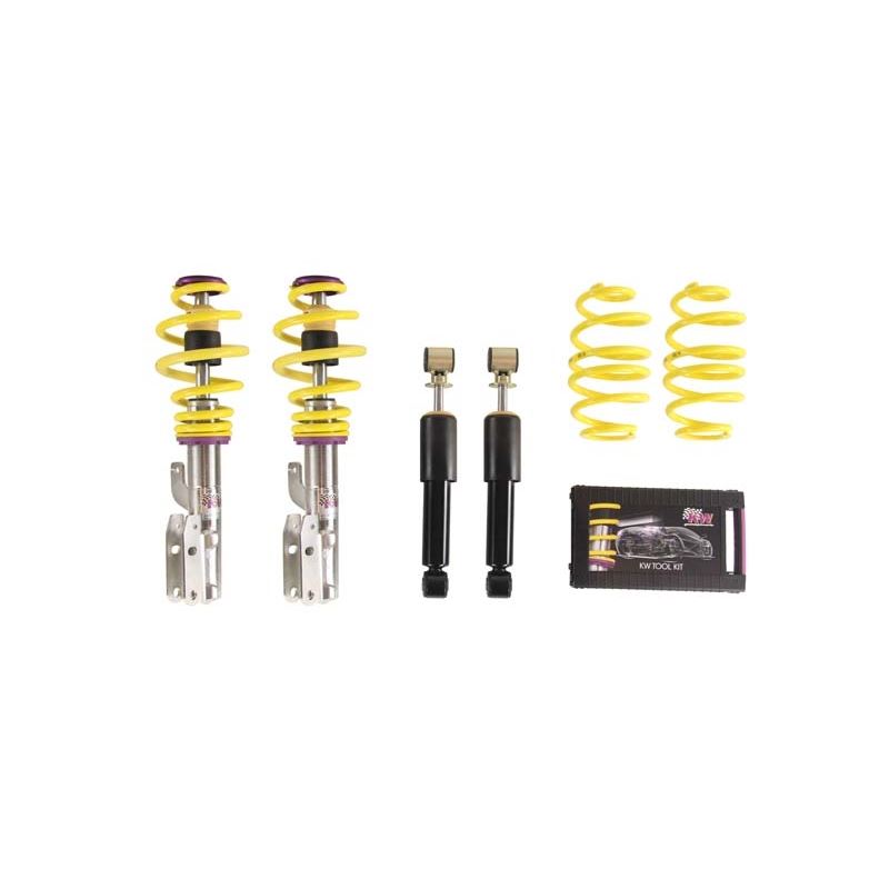 KW is the Benchmark for coilovers. KW Variant 2 "inox-line" coilover rewards the sporty driver with its harmonious pre-configured setup. For each vehicle our engineers develop a specific damper setup and spring rate to increase the driving pleasure with an optimal balance of sportiness and practicality. As with all KW coilovers, the engineers at KW develop the vehicle-specific KW damper tuning and spring rates with comprehensive testing on the Nurburgring Nordschleife and in the KW 7-post chassis dynamics test center. You are not buying a mass produced, generic coilover kit, a KW coilover has been developed specifically for your particular vehicle. As a manufacturer, KW uses only its own resources, high quality components and the damper technology that has all developed in-house. With the KW Variant 2 "inox-line" coilovers, body roll will be reduced during compression giving you the benefit of a more genuine and direct sporty handling while driving.