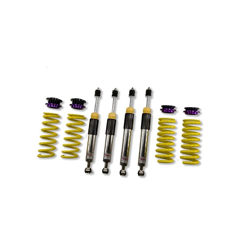 - Customized Suspension Lowering. KW coilover suspensions, KW height adjustable springs, and KW DLC Air Suspensions allow the suspension to be lowered within the vehicle's technical limitations. For example, our Street Comfort products allow for a customized ride height setting with mild suspension lowering from 10 - 50 mm, while the Street Performance products allow the maximum technically possible suspension lowering range from 45 - 85 mm, depending on the vehicle. This means that the suspension can be lowered to suit the personal needs of the user and, depending on the product category, a setting ranging from Comfort to Performance can be chosen.