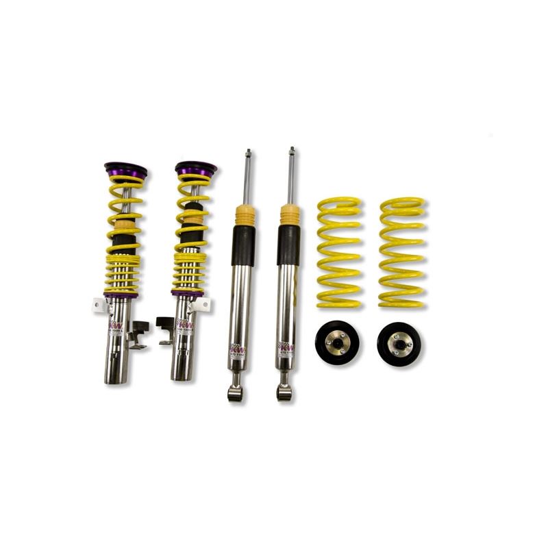 KW is the Benchmark for coilovers. KW Variant 2 "inox-line" coilover rewards the sporty driver with its harmonious pre-configured setup. For each vehicle our engineers develop a specific damper setup and spring rate to increase the driving pleasure with an optimal balance of sportiness and practicality. As with all KW coilovers, the engineers at KW develop the vehicle-specific KW damper tuning and spring rates with comprehensive testing on the Nurburgring Nordschleife and in the KW 7-post chassis dynamics test center. You are not buying a mass produced, generic coilover kit, a KW coilover has been developed specifically for your particular vehicle. As a manufacturer, KW uses only its own resources, high quality components and the damper technology that has all developed in-house. With the KW Variant 2 "inox-line" coilovers, body roll will be reduced during compression giving you the benefit of a more genuine and direct sporty handling while driving.