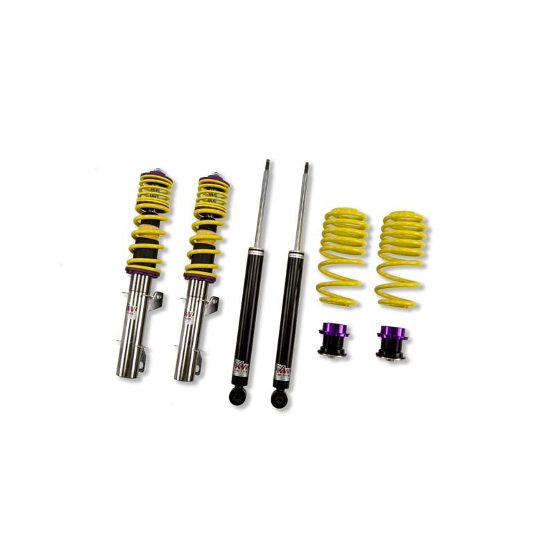 KW is the Benchmark for coilovers. KW Variant 2 "inox-line" coilover rewards the sporty driver with its harmonious pre-configured setup. For each vehicle our engineers develop a specific damper setup and spring rate to increase the driving pleasure with an optimal balance of sportiness and practicality. As with all KW coilovers, the engineers at KW develop the vehicle-specific KW damper tuning and spring rates with comprehensive testing on the Nurburgring Nordschleife and in the KW 7-post chassis dynamics test center. You are not buying a mass produced, generic coilover kit, a KW coilover has been developed specifically for your particular vehicle. As a manufacturer, KW uses only its own resources, high quality components and the damper technology that has all developed in-house. With the KW Variant 2 "inox-line" coilovers, body roll will be reduced during compression giving you the benefit of a more genuine and direct sporty handling while driving.