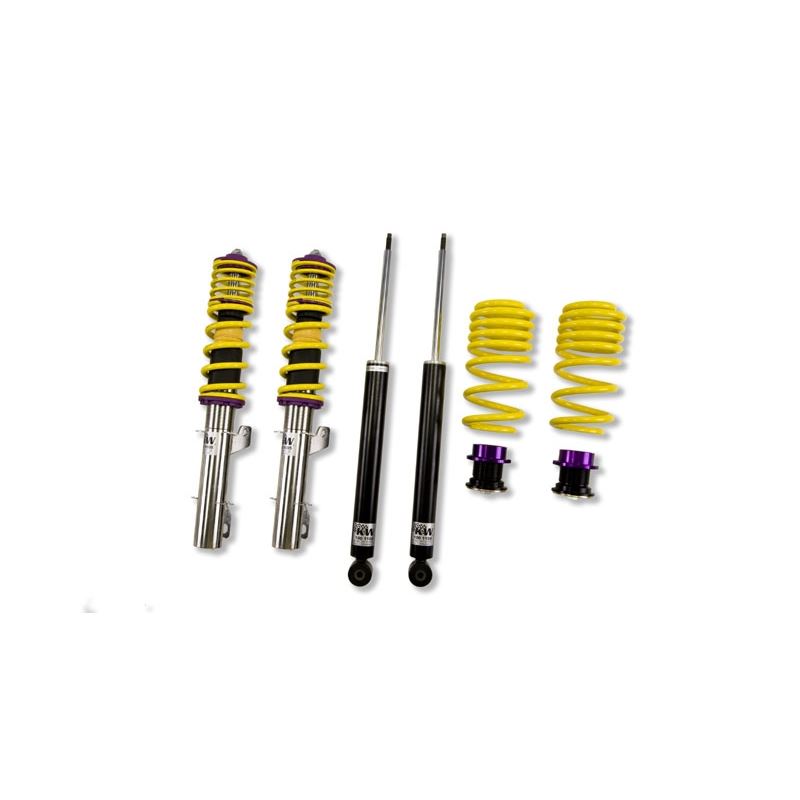 KW is the Benchmark for coilovers. KW Variant 2 "inox-line" coilover rewards the sporty driver with its harmonious pre-configured setup. For each vehicle our engineers develop a specific damper setup and spring rate to increase the driving pleasure with an optimal balance of sportiness and practicality. As with all KW coilovers, the engineers at KW develop the vehicle-specific KW damper tuning and spring rates with comprehensive testing on the Nurburgring Nordschleife and in the KW 7-post chassis dynamics test center. You are not buying a mass produced, generic coilover kit, a KW coilover has been developed specifically for your particular vehicle. As a manufacturer, KW uses only its own resources, high quality components and the damper technology that has all developed in-house. With the KW Variant 2 "inox-line" coilovers, body roll will be reduced during compression giving you the benefit of a more genuine and direct sporty handling while driving.