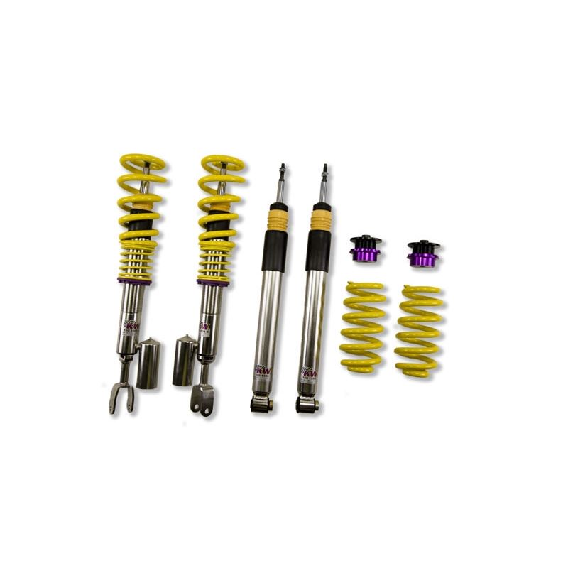 KW is the Benchmark for coilovers. KW Variant 3 "inox-line" coilover rewards the sporty driver with its harmonious pre-configured setup. For each vehicle our engineers develop a specific damper setup and spring rate to increase the driving pleasure with an optimal balance of sportiness and practicality. As with all KW coilovers, the engineers at KW develop the vehicle-specific KW damper tuning and spring rates with comprehensive testing on the Nurburgring Nordschleife and in the KW 7-post chassis dynamics test center. You are not buying a mass produced, generic coilover kit, a KW coilover has been developed specifically for your particular vehicle. As a manufacturer, KW uses only its own resources, high quality components and the damper technology that has all developed in-house. With the KW Variant 3 "inox-line" coilovers, body roll will be reduced during compression giving you the benefit of a more genuine and direct sporty handling while driving.