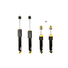 Full-bodied coilovers replace the entire factory strut or shock absorber. Full-bodied coilovers with threaded lower mounts are the best way to change ride height. The lower mount rotates up or down on the threads, and is then locked in place with a locknut, without disturbing spring preload. Spring preload on these units is adjusted separately using the same type threaded collar and locknut system. Our coilovers come in monotube and twin-tube designs, and are available with and without coil springs. We offer coilovers to replace air suspension units, and for select coilovers and applications we have electronic control modules that allow damping to be adjusted from inside the cabin or be automatically adjusted in response to sensor input.