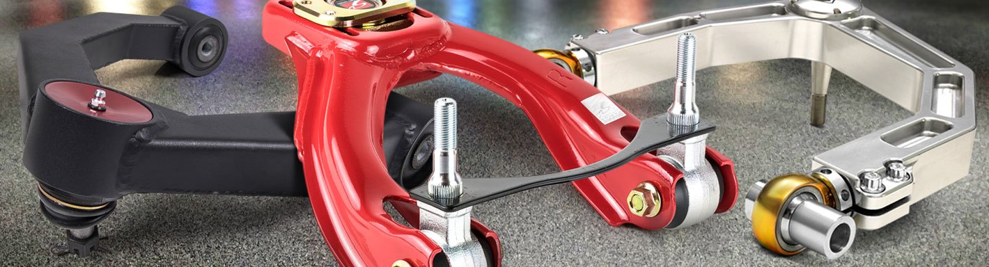 Factory control arms aren't designed to withstand significant horsepower increases and aggressive driving at the limit. Your OE arms also may not have the clearance you need for wider wheels and tires, or allow the alignment angle adjustments required for high speed driving or when ride height is significantly altered, like on lowered cars or lifted trucks. Our performance control arms have the heavy-duty construction to handle the g-forces and power, the configuration to prevent tire rubbing, and the alignment angles you need for optimal handling and high speed stability.