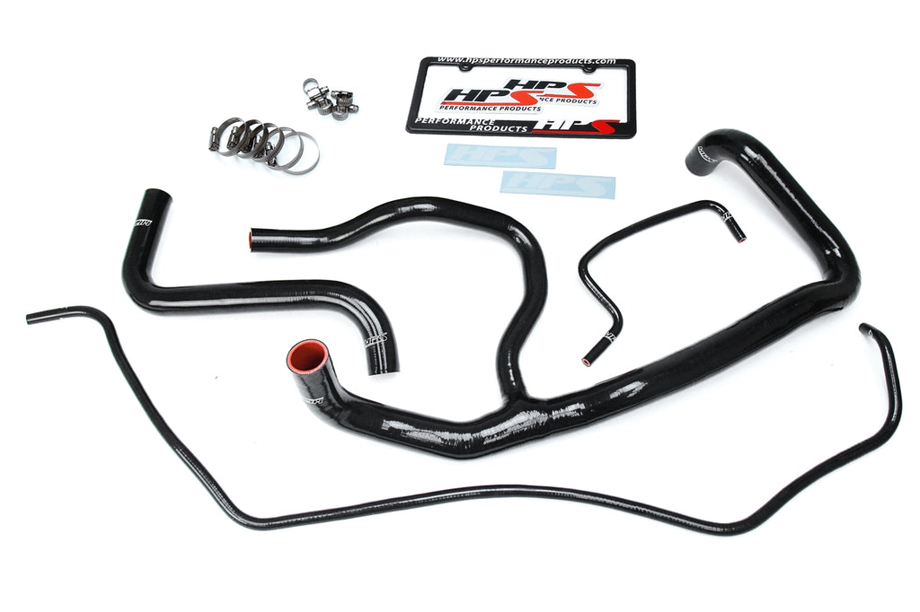 Cadillac 15-17 Escalade ESV 6.2L V8 HPS High Temp 3-ply Reinforced Silicone Radiator Hose Kit Black is designed to replace stock OEM rubber hoses which can eventually weaken over time, leading to premature failure. With premium quality silicone and race inspired design, this HPS silicon radiator hose kit can withstand the harsh high temperature and high pressure operating conditions of the engine yet still maintaining peak efficiency during competition or daily driving. HPS silicone radiator hose kit has all the correct bends and curves for a perfect fit replacement for your OEM rubber coolant hoses, compare to the universal hoses you can get from the local auto store, HPS hose kit is much easier to work with. Max Temperature Rating: 350 deg. F (177 deg. C). 100% Stainless Steel Clamps are included for easy installation.