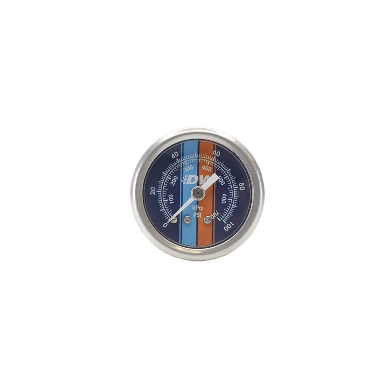 Deatschwerks Mechanical Fuel Pressure Gauge 1/8 NPT. 0-100 PSI. 1.5 in Diameter, Blue Face (6-01-G2)