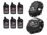 aFe Power's Pro Series front and rear differential covers bring performance-driven protection to your drivetrain. Constructed from durable cast aluminum and designed with reinforced ribs, these covers offer enhanced strength and improved heat dissipation for demanding driving conditions. This is a complete, ready-to-install kit that includes front and rear differential covers, all necessary hardware, and 6 quarts of 75W-90 premium PROGUARD Synthetic gear oil —everything you need for a full service in one convenient package. The supplied gear oil exceeds the performance requirements of API GL-5 recommended for both open and limited slip applications. These covers have an increased oil capacity over stock for better performance over a longer duration. Built-in internal and external fins transfer heat from the oil to the outside air for maximum cooling. This system incorporates magnetic drain and deep reach fill plugs to capture loose particles for maximum protection. Each cover uses a calibration plug set to the factory oil level to eliminate overfilling. Each cover includes an oil level sight glass that allows for quick and easy oil inspection.