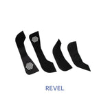 Each kick panel cover kit is prepared to be easily installed by utilizing high grade adhesives to securely and quickly be placed onto the door panel. Removal is just as easy & clean, and will not leave any residue.