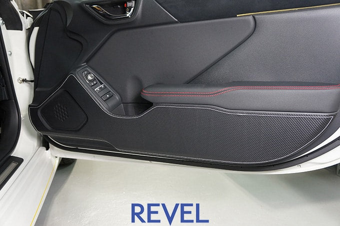 The GT Design kick panel cover adheres to the interior door panel and protects it from various scuffs, scratches, & dirt. The premium carbon fiber style pattern enhances the overall look of the interior.