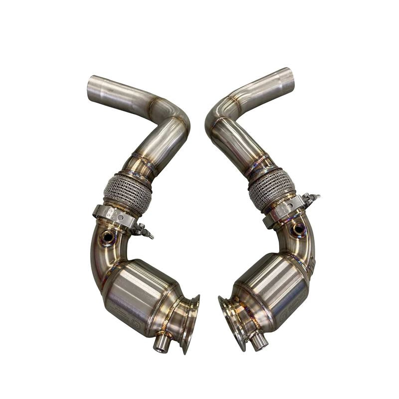TheS63TU downpipes are strategically engineered to virtually eliminate the immensely restrictive characteristics of the factory M5 downpipes therefore reducing radiant heat and increasing performance. Our M5 downpipes will significantly increase horsepower and torque throughout the powerband. They will reduce any turbo lag