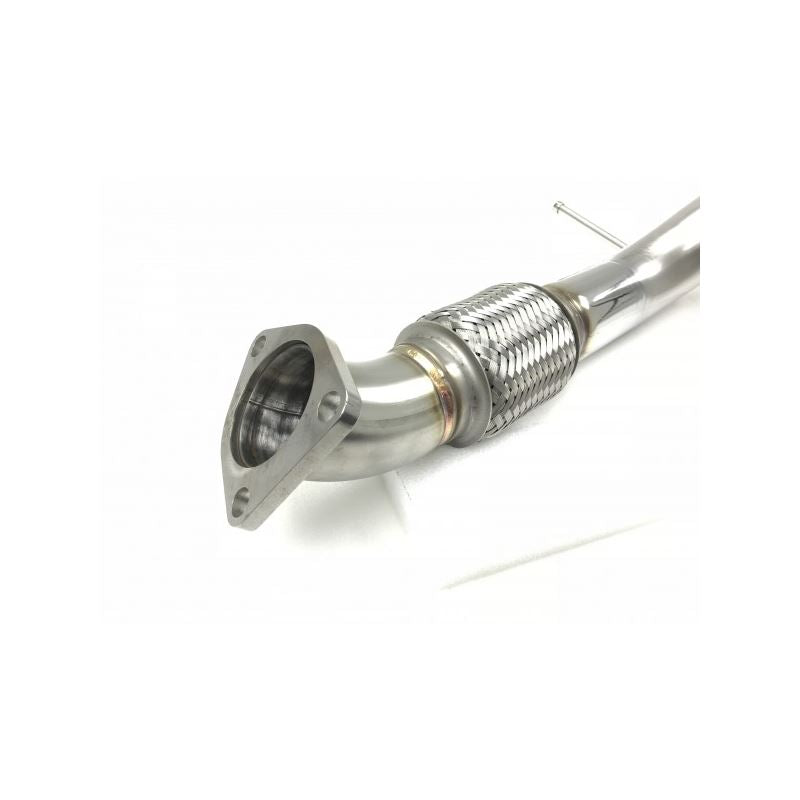 The Apex Down Pipe is the pipe on turbo vehicles that connects the turbine exhaust housing to the catalytic converter. Although short in length, the Apex downpipes provide incredible amounts of power because the piping diameter is enlarged so early on the exhaust system. This enlargement in diameter results in a dramatic increase in exhaust flow capacity as well as a significant reduction of back pressure. The GT spec Down Pipes are constructed of fully polished SUS 304 stainless steel. The N1 Down Pipes come with our trademark black powder coated mild steel pipes. This product is the Frontpipe (Lower Downpipe) below the Turbo manifold/catalytic converter