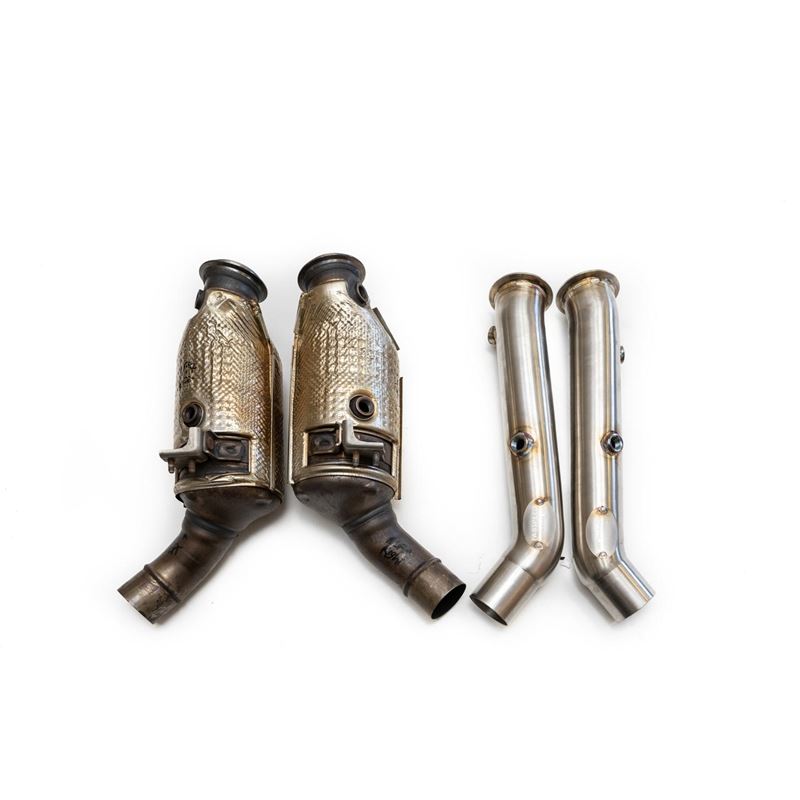 - Simple direct replacement bolt-on straight pipes to replace the OEM catalytic converters.