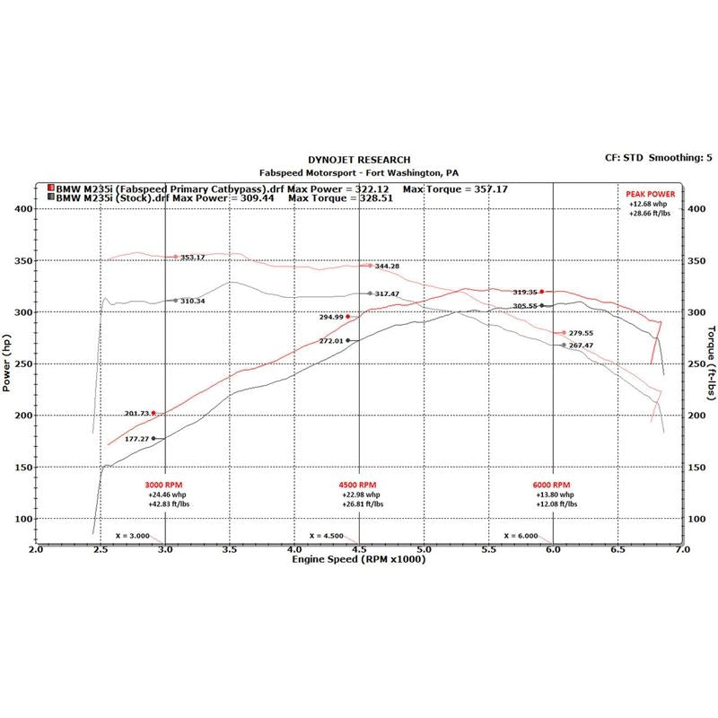 The ultimate catless downpipe offering maximum power and sound; adds 24 whp and 43 ft/lbs of torque at 3000 RPM; not recommended for street use