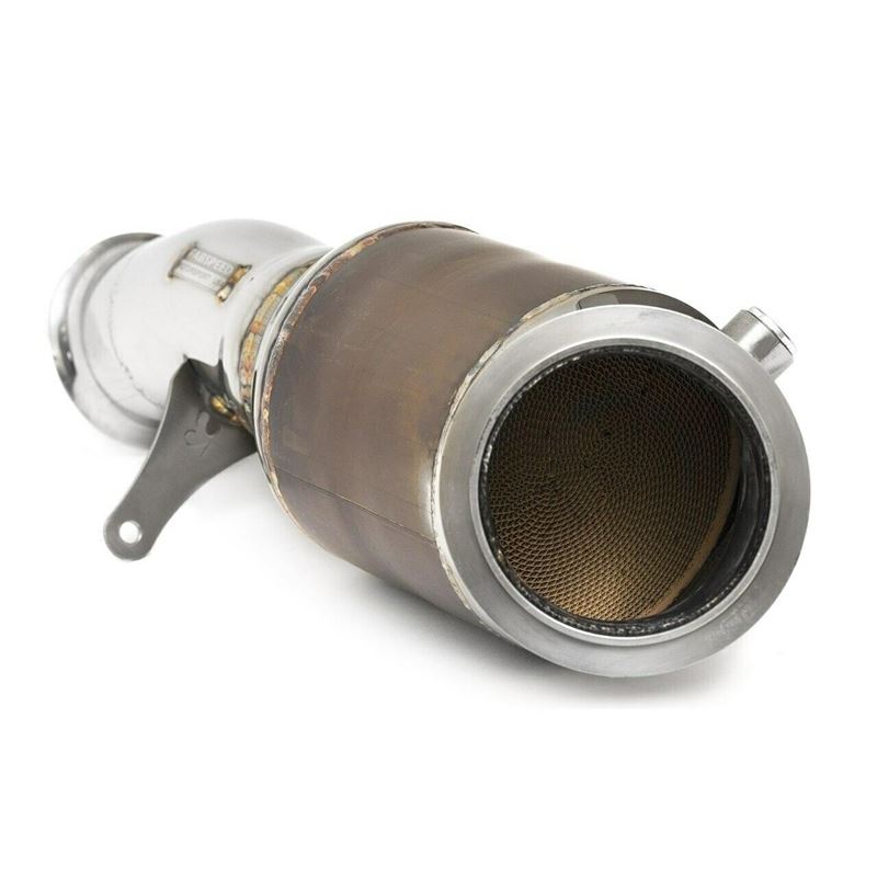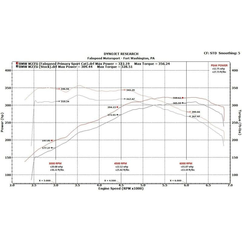 Inject new life into your M235i with a perfect high-flow catted downpipe! Genuine 200-cell HJS HD catalyst instantly adds a staggering 21 whp and 36 ft/lbs of torque at 3000 RPM without triggering a check engine light!