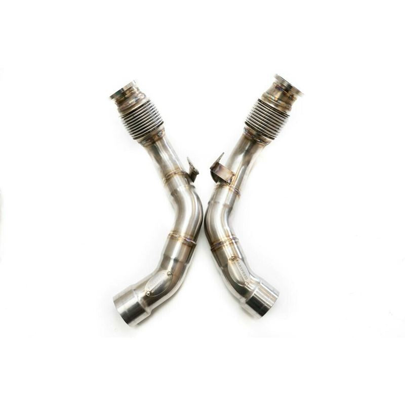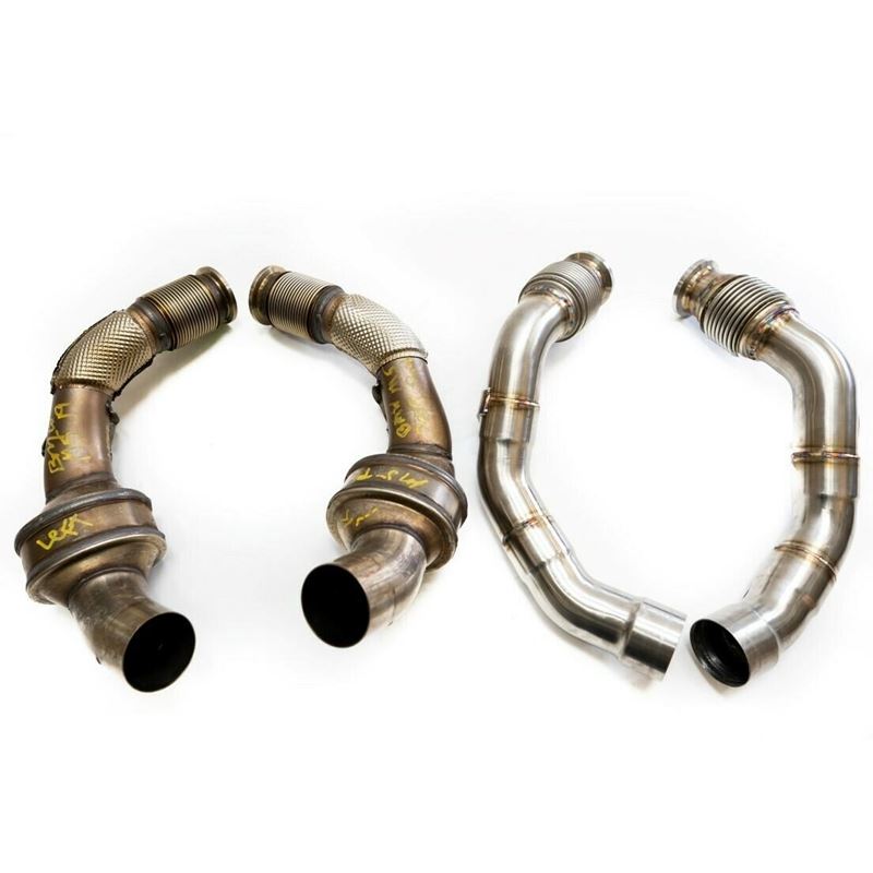Eliminate the heavy and restrictive factory secondary catalytic converters with straight-pipe, high flowing stainless steel downpipes for maximum power and an exhilarating sound.