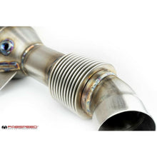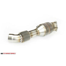 This downpipe feature German made HJS 200 cell EURO 6 compliant trimetallic catalytic converters. We use 4 in piping from the engine side to the cat, and 3 in tubing from the cat to the rest of the exhaust. Our larger catalytic converters are better because they allow for more exhaust flow and the increased catalysts surface area allows for better exhaust gas filtering which means emissions compliance that will NOT trigger a check engine light. Our Sport Cat Downpipe are a direct bolt-on replacement for the factory M340i catalytic converter.