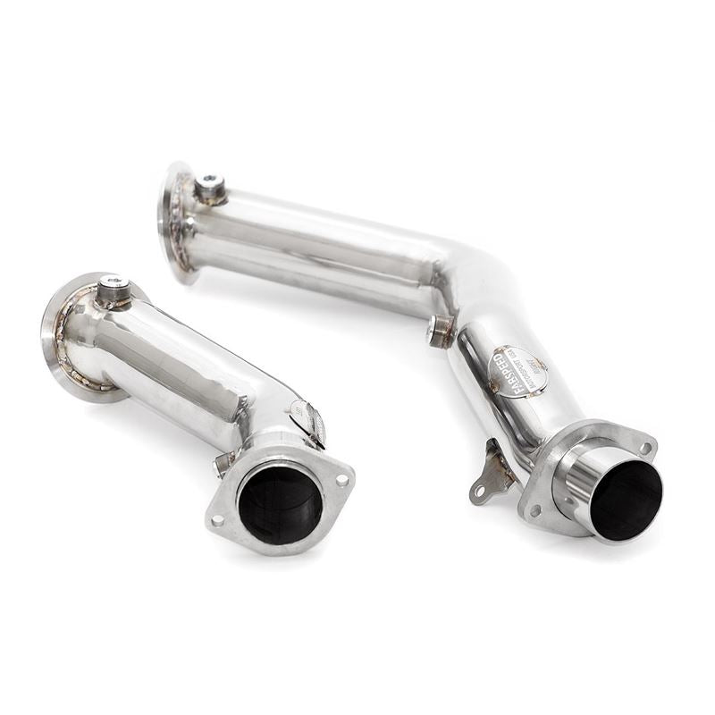 Eliminate the heavy and restrictive factory catalytic converters with straight-pipe, high flowing stainless steel downpipes for maximum power and an exhilarating sound.