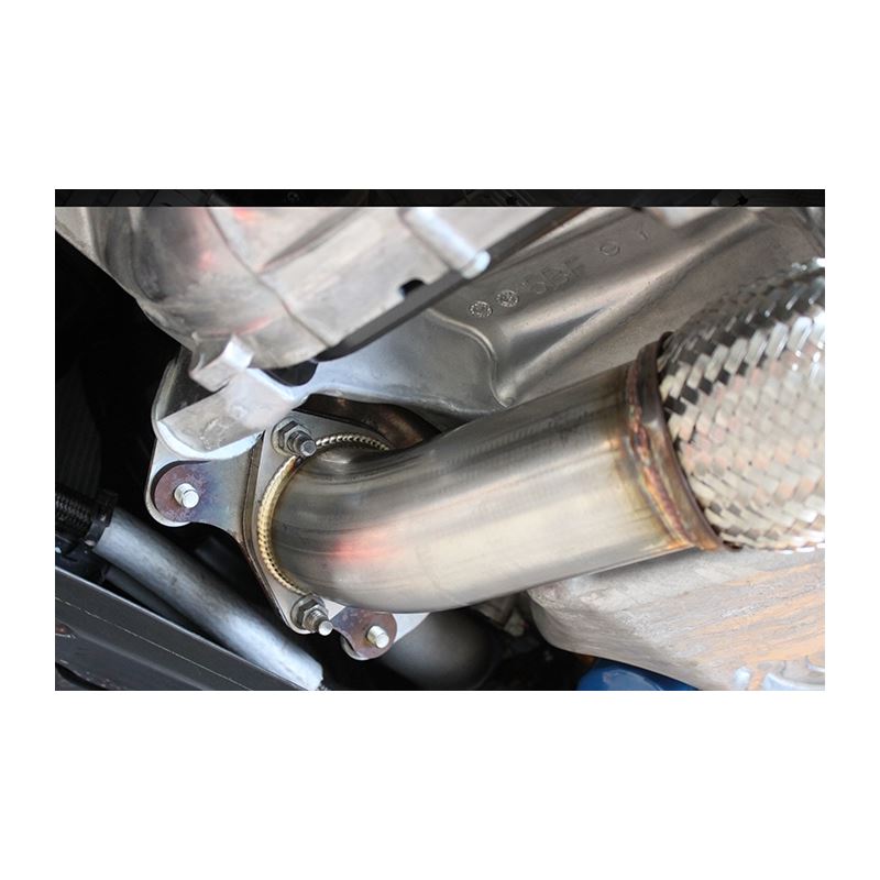 Maximize the flow of our your 3" (FK8) Civic Type R cat-back exhaust with the simple installation of our optional 3" (76mm) Front Overpipe with flex pipe. This full 3" (76mm), emissions-friendly, cat-back, stainless-steel, front over-pipe for (FK8) Civic Type R, installs with common sized, high quality laser cut 3-bolt flanges, in between the factory down-pipe (or aftermarket equivalent) and GReddy Supreme SP (& HG) exhaust with Full 3" Forward Mid-pipe p/n 10558601 (or many popular aftermarket 3" exhaust systems).
