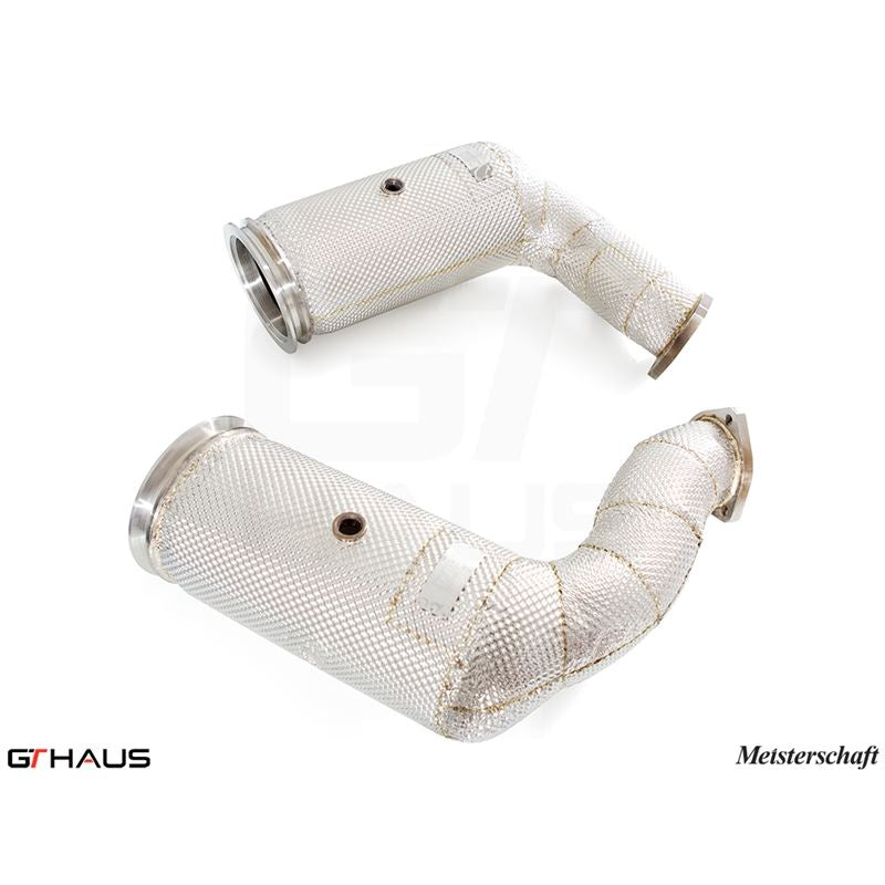GTHAUS Meistershaft Down Pipe Section - Cat Elimination Pipes (with Reservoir and Heat Shield); Stainless Steel (LA0513001)