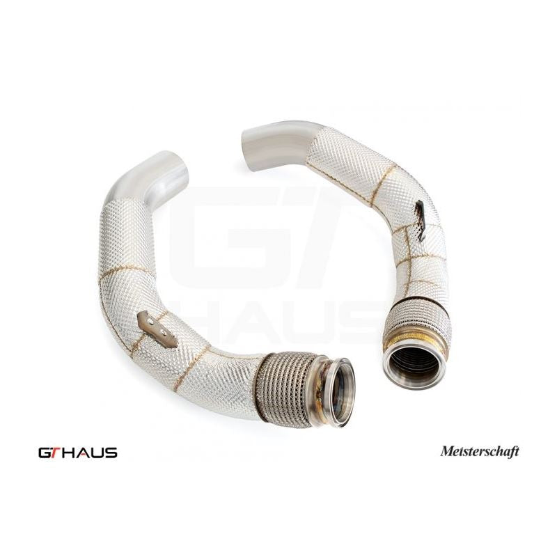GTHAUS Meistershaft Secondary Down Pipe Section - cat elimination pipes (90mm piping)with heat shield; Stainless Steel (BM4613004)